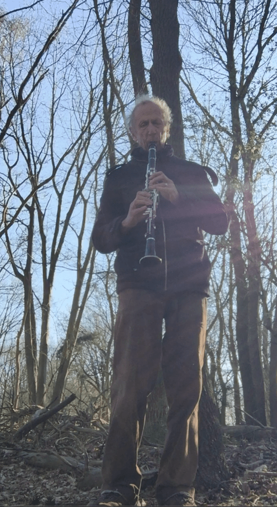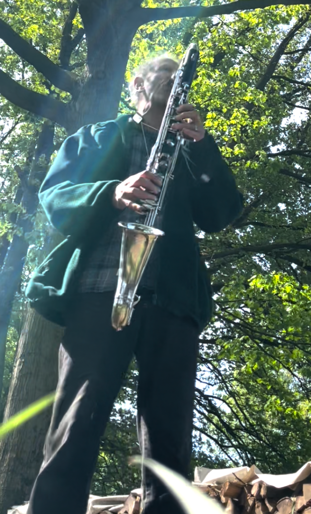 Fast forward another couple of years and there I am in the same little wood with my bass clarinet (remember that?) and suddenly something has changed. I’ve been out there a few times in the years in between with various instruments. I’ve also been out there from time to time doing stuff that needed doing and I’ve been out there just giving my senses full rein – open to everything around but, let’s say, passive. But now, on this particular slightly chilly May morning with this particular instrument, I’m suddenly more at home there than I’ve ever been – free to be myself, to be seen by passing strangers, to play whatever comes into my head without worrying about context, to play around a bit, to acknowledge that there’s a camera there and that I might show this to other people – and somehow also more tuned in to what’s happening around me, to what the other inhabitants of this little ecosystem are doing, than I perhaps ever was.